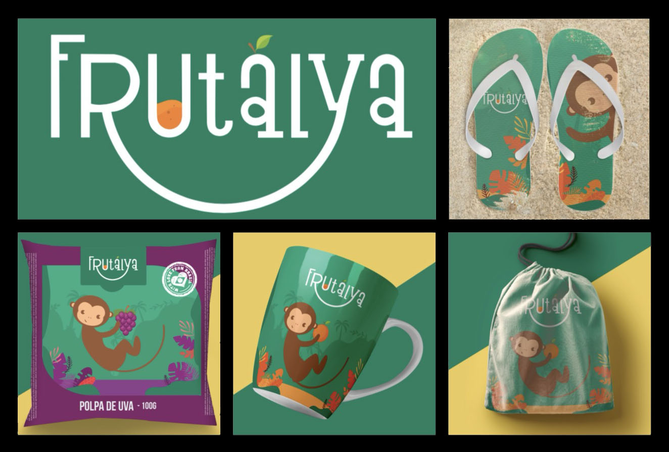 A partir de inspirações como flora, fauna e natureza, chegamos ao case de sucesso Frutalya. A marca, que vende produto como polpas e sucos, buscou uma identidade visual com elementos que remetem ao infantil e também a um apelo natural.